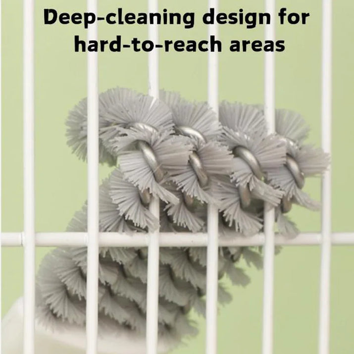 Antwort 1: Die Bürste ist mit einer Kombination aus harten und weichen Borsten ausgestattet, die speziell entwickelt wurden, um hartnäckige Verschmutzungen wie Vogelkot effektiv zu entfernen, während die weichen Borsten schonend zu sensiblen Flächen sind und diese nicht beschädigen. Damit erreichen Sie selbst die schwierigsten Ecken des Käfigs mühelos.